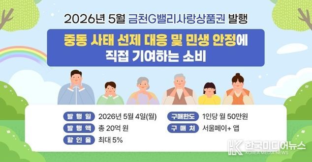 [ 한국미디어뉴스 이원영 기자 ] 금천구는 5월 4일 오전 9시 ‘금천G밸리사랑상품권’ 20억 원을 발행한다고 밝혔다.