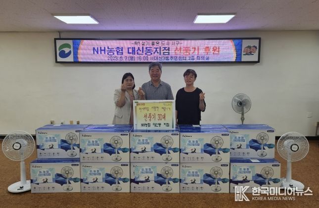 [ 한국미디어뉴스 김승희 기자 ] NH농협대신동지점은 관내 취약계층의 시원한 여름나기를 위해 사용해 달라며 서대신3동 사랑의이웃사촌후원회에 선풍기 30대를 기탁했다.