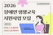 [ 한국미디어뉴스 김풍옥 기자 ] 충북인재평생교육진흥원(원장 유태종)은 2026년 장애인 평생교육 지원사업에 참여할 도내 기관·단체를 공개 모집한다. 이번 사업은 장애인 평생교육의 영역을 넓히고, 장애인 학습자의 실질적인 학습권 보장을 강화하기 위해 마련됐다. 공모 분야는 △(1유형) 장애인 평생교육 프로그램 운영 △(2유형) 장애인 평생교육 참여 지원 및 학습 접근성 강화 △(3유형) 장애인 평생교육 실무자 네트워크 운영 지원 등 총 3개 유형이다. 지원 대상은 도내 장애인 평생교육 관련 기관 및 단체다. 유형별 주요 내용은 △(1유형) 장애 유형·연령·학습 수준 등을 반영한 맞춤형 평생교육 프로그램 운영 △(2유형) 이동과 의사소통, 학습 이해를 돕기 위한 보조 인력 및 환경적 지원 제공 △(3유형) 장애인 평생교육 유관기관 실무자를 중심으로 한 협력 네트워크 구축 및 운영 등이다. 보다 자세한 사항은 공고문을 통해 확인할 수 있다. 접수는 2월 26일까지이며 세부 공고 내용과 신청 서식은 충북인평원 홈페이지 공지사항에서 확인할 수 있다. 충북인평원은 이번 공모를 통해 총 10개