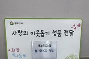 [ 한국미디어뉴스 김서안 기자 ] 동두천시 불현동 새누리교회는 11월 3일 불현동 행정복지센터에 백미 45kg을 전달했다고 밝혔다. 새누리교회는 불현동에 위치한 개신교 교단으로, 매년 나눔을 실천하며 지역사회에 따뜻한 온정을 나누고 있다. 민경엽 담임목사는 “지역의 소외된 이웃들이 추운 겨울 따뜻한 연말을 보낼 수 있길 바란다”며 “작은 정성이지만 도움이 됐으면 좋겠다”라고 전했다. 김영미 불현동장은 “지역사회를 위해 꾸준히 나눔을 실천해 주신 데 감사드리며, 후원해 주신 백미는 도움이 필요한 취약계층에 소중히 전달하겠다”라고 말했다.