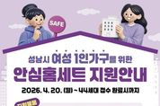 [ 한국미디어뉴스 이원영 기자 ] 성남시는 여성 1인 가구의 범죄예방과 안전한 주거생활을 위해 ‘안심 홈세트 3종’을 지원한다고 16일 밝혔다. 지원 품목은 스마트 도어벨, 홈캠, 문열림 센서다. 대상은 성남시에 사는 여성 1인 가구 또는 한부모(모자, 부녀)가족이면서 전월세 보증금 3억원 이하의 다가구·다세대 주택 거주자다. 지원 물량은 44가구다. 시는 신청자의 자격요건 확인 뒤 대상 가구에 안심 홈세트를 선착순으로 지원한다. 희망자는 오는 4월 20일부터 성남시 홈페이지(시정소식→새소식) 또는 경기민원24 홈페이지(여성 1인가구 안심패키지 지원사업)를 통해 신청서와 임대차계약서 사본을 첨부해 보내면 된다. 시청 6층 여성가족과를 방문 접수하거나 담당자 이메일로 해당 서류를 보내도 된다. 성남지역 1인 가구 수는 3월 말 기준 전체 41만325가구의 39%인 16만661가구다. 이 중 여성 1인 가구는 48%인 7만7845가구다. 성남시는 2021년도부터 이 사업을 펴 지난해까지 5년간 576가구에 안심 홈세트를 지원했다.
