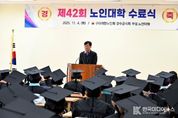[ 한국미디어뉴스 이종철 기자 ] 장수군은 4일 (사)대한노인회 장수군지회가 장수군사회복지회관에서 제42회 노인대학 수료식을 개최했다고 밝혔다. 홍봉길 노인대학장과 107명의 노인대학생이 참석한 이번 행사는 지역사회의 주목을 받았다. 최훈식 장수군수와 최한주 군의회 의장, 기관·단체장, 지회 임원 등 내빈들이 참석한 가운데 열린 이날 수료식은 국민의례, 학사 보고, 수료증 수여, 우수 수료생 표창, 격려사 및 축사 등의 순서로 진행됐다. 이날 행사는 학업에 대한 열정과 배움의 기쁨이 어우러진 따뜻한 분위기 속에서 서로를 축하하며 마무리됐다. 허기태 지회장은 “어르신들의 꾸준한 노력과 서로를 격려하는 따뜻한 학습 분위기가 오늘의 결실을 이루게 했다”며 “내년에도 더욱 즐겁고 유익한 프로그램 운영하여 많은 어르신들의 배움의 기회를 가질 수 있도록 노력하겠다”고 말했다. 최훈식 군수는 축사를 통해 “배움에 대한 열정을 잃지 않고 노인대학을 통해 평생교육의 결실을 거두는 어르신들에게 진심으로 축하와 존경의 말씀을 드린다”며 “노인대학에서의 배움과 인연이 앞으로의 인생이 더욱 풍요롭게 하길 바