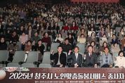 [ 한국미디어뉴스 김풍옥 기자 ] 청주시는 23일 롯데시네마 용암점에서 ‘2025 청주시 노인맞춤돌봄서비스 종사자 한마음대회’를 성황리에 개최했다. 이번 행사는 청주 지역 노인맞춤돌봄서비스의 질적 향상을 도모하고, 현장에서 헌신해 온 종사자들의 노고를 격려하기 위해 마련됐다. 행사에는 이범석 청주시장을 비롯한 시 관계자와 전담사회복지사, 생활지원사 등 관계자 약 320명이 참석했다. 행사 1부에서는 취약노인 보호에 기여한 6개 수행기관(청주시독거노인통합지원센터, 서원노인복지관, 가경노인복지관, 우암소규모노인종합센터, 사회적협동조합 휴먼케어, 목령종합사회복지관)의 노인맞춤돌봄 유공자 20명에게 시장·시의장 표창이 수여됐다. 이를 통해 현장에서 묵묵히 역할을 수행해 온 종사자들의 헌신에 감사의 뜻을 전했다. 2부에서는 종사자들을 위한 영화 관람 시간이 마련돼, 업무로 인한 스트레스를 해소하고 재충전할 수 있는 기회를 제공했다. 참석자들의 큰 호응 속에 행사의 의미를 더했다. 이범석 청주시장은 “앞으로도 어르신들이 익숙한 거주 지역에서 안정적으로 다양한 통합 돌봄 서비스를 누릴