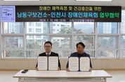[ 한국미디어뉴스 김만길 기자 ] 인천시 남동구는 인천시 장애인체육회와 장애인 체력측정 및 건강증진교실 운영을 위한 지역사회 중심 재활사업 업무협약을 체결했다고 19일 전했다. 협약식에는 이은선 남동구 보건소장과 최의순 인천시장애인체육회 사무처장 등 양 기관 관계자들이 참석해 장애인 건강증진을 위해 함께 노력하기로 합의했다. 협약에 따라 남동구 보건소는 서창건강생활지원센터에서 인천시장애인체육회(인천장애인체력인증센터)와 협업해 장애 유형을 고려한 과학적인 체력측정을 정기적으로 실시한다. 또한, 개인별 맞춤형 운동처방 및 운동프로그램을 제공해 장애인들이 스스로 건강을 관리할 수 있는 체계를 구축할 수 있도록 돕는다. 구는 1월 27일 장애인 20명을 대상으로 정확한 체력측정을 통해 개인별 체력 수준을 파악 후, 1월 30일부터 매주 금요일(8주 프로그램) 맞춤형 운동처방을 통한 장애인 건강증진 교실을 운영할 예정이다. 박종효 남동구청장은 “장애인들이 자신의 신체 상태를 정확하게 이해하고 그에 따른 필요한 재활 운동을 하는 데 도움이 되길 바란다”라고 말했다. ‘장애인 체력측정