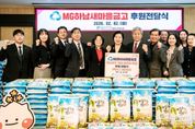 [ 한국미디어뉴스 김서안 기자 ] 지난 2일, MG하남새마을금고는 설 명절을 맞아 ‘사랑의 좀도리 운동’의 일환으로 백미 200포 총 2,000kg을 하남시미사강변종합사회복지관에 전달하며 지역사회 내 취약계층 이웃을 위한 따뜻한 나눔을 실천했다. ‘사랑의 좀도리 운동’은 쌀을 한 숟가락씩 덜어 모아 어려운 이웃을 돕는 전통적인 나눔 활동으로, MG하남새마을금고는 오랜 기간 이 운동을 통해 지역사회 취약계층을 위한 나눔을 지속적으로 이어오고 있다. 이번에 전달된 백미 200포는 설 명절을 앞두고 생계 부담이 큰 취약계층 가정에 전달되어 따뜻한 명절을 보내는 데 도움을 줄 예정이다. 이날 전달식에는 MG하남새마을금고 이점복 이사장 및 임직원을 비롯하여 하남시민생안정후원회 한상영 회장, 하남시미사강변종합사회복지관 조혜연 관장, 하남시니어클럽 양우식 관장, LH행복꿈터 지역아동센터 김길임 센터장, 다함께돌봄센터 김고운 센터장이 함께 자리를 빛내주었다. MG하남새마을금고는 매년 백미 지원뿐만 아니라 냉방기기 지원, 김장김치 지원, 생활용품 후원, 지역사회 상생 활동 등 다양한 사회공헌 활동을 통해 지역사회와 함께 성장