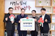 [ 한국미디어뉴스 김서안 기자 ] 양주시가 10일 ㈜케이알씨(대표 오전식)로부터 이웃돕기 성금 1,000만 원을 기탁받았다. 이번 기탁식에는 오전식 대표가 참석해 시 관계자와 환담을 나누며 따뜻한 나눔의 뜻을 전했다. 기탁된 성금은 경기사회복지공동모금회를 통해 양주시 취약계층 지원에 사용될 예정이다. 오전식 대표는 “기업이 지역에서 성장한 만큼, 도움이 필요한 이웃들에게 조금이라도 힘이 되고 싶어 매년 나눔을 이어오고 있다”며 “앞으로도 지역사회와 함께하는 기업으로서 책임을 다하겠다”고 말했다. 시 관계자는 “꾸준한 기부로 이웃사랑을 실천해 주신 ㈜케이알씨에 감사드린다”며 “전달된 성금이 꼭 필요한 분들께 잘 닿을 수 있도록 시에서도 정성을 다하겠다”고 말했다. 한편 ㈜케이알씨는 매년 기부와 봉사활동을 지속해 오고 있으며, 지난 5일 양주시 ‘시민포상의 날’에서 나눔문화 확산 유공을 인정받아 포상을 받는 등 지역사회 상생에 앞장서고 있다.