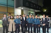 [ 한국미디어뉴스 김서안 기자 ] 아산시의회는 지난 10월 22일 제80회 경찰의 날을 맞아 온천지구대를 방문해 지역 치안을 담당하는 경찰관들을 격려했다. 이날 방문에는 홍성표 의장과 명노봉 의원, 박효진 의원이 함께했으며, 지역 치안 현황을 점검하는 현장 근무자들의 의견과 애로사항을 청취했다. 의원들은 “지역사회의 치안 유지와 주민 안전을 위해 헌신하시는 경찰관 여러분께 깊이 감사드린다”며 “시민이 안심하고 생활할 수 있는 안전한 지역사회 조성을 위해 의회도 적극 협력하겠다”고 말했다. 홍성표 의장은 “시민의 안전과 생명을 지키기 위해 낮과 밤을 가리지 않고 현장에서 최선을 다하시는 경찰관 여러분께 진심으로 감사드린다“면서 ”아산시의회는 시민의 안전을 최우선 가치로 삼고, 경찰과의 긴밀한 협력을 통해 신뢰받는 안전도시 아산을 만드는 데 최선을 다하겠다“고 밝혔다. 사진 설명: 아산시의회 홍성표 의장과 명노봉 의원, 박효진 의원은 경찰의 날을 맞이하여 온천지구대를 방문해 경찰관들을 격려하고 있다.