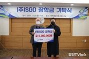 [ 경인TV뉴스 김선근 기자 ] 한국폴리텍대학 인천캠퍼스(학장 이상호)는 20일(월) 오후, 대학 본관에서 ‘2021년 ㈜SGO 장학금 기탁식’을 가졌다. 기탁식에는 ㈜SGO 최원호 부사장, 한국폴리텍Ⅱ대학 이상호 학장, 한상복 학생처장, 신동철 스마트재료과 학과장, 학과 교수 등이 참석하여 장학금 500만원을 기탁했다. ㈜SGO는 2000년 창립, 현재까지 다수의 국내외 특허를 보유한 뿌리기술 전문기업으로 산업용 기계 및 금형에 사용되는 오일레스 베어링(Oilless Bearing)을 전문적으로 제조하는 기업이다. 이번 장학금 기탁뿐만 아니라 주기적으로 대학을 방문, 학생들의 기술지도와 멘토 역할을 하는 등 적극 지원하고 있다. 또한, 스마트재료과 내 주사전자현미경(SEM) 장비 활용과 졸업생 취업 연계를 통하여 산학협력 활동을 이어나가고 있다. 최원호 ㈜SGO 부사장은 “코로나19 확산으로 교육 현장에도 어려운 상황이 지속되고 있다”며 “소정의 장학금이 학생들의 꿈을 담을 수 있는 희망이 되길 바란다” 고 밝히며, 향후에도 지속적인 지원을 약속하였다. 이상호 한국폴리텍Ⅱ대학 학장은 “대한민국 뿌리 산업 발전과 기술인재 양성을 위해 장학금을 기탁해 주신 것