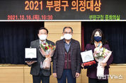[ 경인TV뉴스 김선근 기자 ] 인천 부평구의회는 김환연 의원과 구동오 의원이 12월 16일 ‘2021년 부평구 의정대상’을 수상했다고 밝혔다. ‘2021년 부평구 의정대상’은 부평구 출입기자단 주최 하에 부평구청 3층 중회의실에서 시상식을 개최하고 상을 수여했다. 이날 김환연 의원은 “임기가 얼마 남지 않은 시점에 뜻깊은 상을 받게 되어 영광이다”며 “지금까지 이야기해왔던 것들을 재점검해보면서 더 나은 성과를 내기 위한 마무리를 잘 하도록 하겠다”고 소감을 밝혔다. 한편 구동오 의원은 “남은 임기를 잘 마무리하라고 받는 상이라고 생각한다”고 하면서, “지역 사회 발전과 주민 복리 증진에 보탬이 될 수 있도록 마지막까지 의정활동에 최선을 다하겠다”고 말했다.