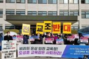 [ 경인TV뉴스 이원영 기자 ] 인천시교육청 교장공모제 면접시험 유출사건 1심 재판에서 가담자 전원이 유죄 판결을 받자, 도성훈 인천시교육감의 사퇴를 촉구하는 목소리가 나왔다. 올바른교육사랑실천운동본부를 비롯한 시민단체 90개는 인천시교육청 앞에서 도성훈 교육감 사퇴촉구 기자회견을 했다. 올바른교육사랑실천운동본부 등 시민단체가 오전 11시 인천시교육청 앞에서 ‘도성훈 교육감 사퇴촉구 기자회견’을 7일 진행했다. 이날 기자회견에 ▲김수진 올바른교육사랑실천운동본부 사무총창이 사회를 보고 ▲ 가용섭 올바른교육사랑실천운동본부 상임대표 ▲이대형 인천교원단체 총연합회 회장 ▲탁인경 송도참교육학부모연대 대표 ▲차승호 ALL바른인권세우기운동본부 대표 ▲최훈 올바른교육사랑실천운동본부 공동대표 등이 참여했다. 이대형 회장은 “인천시교육청은 능력 있는 평교사 임용이라는 허위를 쓰고 실시하는 무자격 교장공모제를 즉각 폐지해야 한다 며 최측근에서 벌어진 비리를 몰랐다고 하면 무능한 교육감이고, 알고도 모르는 척 범죄를 저질렀다면 즉각 교육감 자리에서 사퇴하는 것이 마땅하다 고 말했다. 탁인경 대표는 인천 교장공모제 비리 전 교육보좌관 징역 1년6개월.인천 교장 공모제 비위 전 보육