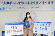 [ 경인TV뉴스 김선근 기자 ] 인천대학교(총장 박종태)는 학생성공 생태계 구현을 위해 재학생들의 소속감 및 자긍심을 고취시키고자 ‘인천대학교 캐릭터 디자인 공모전’을 실시하여 17일 시상식을 가졌다. 본 공모전에는 재학생 및 졸업생 총 37팀이 지원해 12팀이 본선에 진출했으며 ‘횃불이’(우재연, 허지예)가 대상을, ‘파앙이’(서인희)가 최우수상, ‘푸천이’(김가온), 유니온(엄태희)가 우수상을 수상했다. 이번 공모전은 인천대학교 재학생 및 졸업생 등 전체 구성원을 대상으로 진행되었으며, 인천대학교의 이미지를 대표할 수 있는 대학 캐릭터를 학생들의 손으로 직접 만들고 구성원의 의견을 수렴하여 최종 수상작이 결정되었다. 공모전을 통해 대학 구성원의 많은 지지와 관심을 받은 친근한 이미지의 캐릭터가 선정되어, 캐릭터에 기반한 다양한 굿즈 제작 및 홍보를 통해 향후 인천대학교의 브랜드인지도 향상에 기여할 것으로 기대된다. 인천대학교 총장은 “학생들이 직접 디자인 한 캐릭터가 우리 대학을 알리는 중요한 브랜드로 활용될 수 있을 것 같다.”며 “코로나 19로 인하여 힘든 시기에도 불구하고 학생들의 능력을 발휘를 통한 성취감을 얻을 수 있는 좋은 기회가 되어 뜻깊으며