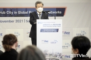 [ 경인TV뉴스 김선근 기자 ] 글로벌 시각에서 인천경제자유구역(IFEZ)의 미래 발전모형을 모색한 인천경제청과 인천연구원 공동 주최의 국제 포럼이 성황리에 개최됐다고 17일 밝혔다. IFEZ가 대외적으로 ‘글로벌 생산네트워크(Global Production Network)’ 속에서 혁신 거점 도시의 발전 경험과 지식을 공유하고 대내적으로는 지역경제에서 혁신 산업 생태계 구축에 대한 정책적 토대와 구축 방향을 논의한 공론의 장이었다는 평가다. 인천경제자유구역청은 17일 송도컨벤시아에서 온·오프라인으로 ‘글로벌 생산 네트워크와 혁신거점 도시(Innovation Hub City in Global Production Networks)’를 주제로 한 ‘2021 글로벌 비즈니스 프런티어 포럼’이 열렸다고 밝혔다. 행사에는 이원재 인천경제자유구역청장과 이용식 인천연구원장, 안성일 산업통상자원부 경제자유구역단장 등이 참석했다. 박남춘 인천시장은 영상으로 축사를 했다. 포럼은 △글로벌 생산네트워크와 관련한 세계적 권위자인 헨리 웨이-청 영(Henry Wai-Chung Yeung) 싱가포르국립대 특훈교수의 ‘글로벌 생산네트워크와 경제특구의 미래’를 주제로 한 기조연설, △세