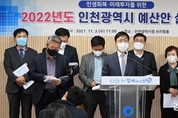[ 경인TV뉴스 김선근 기자 ] 안영규 인천시 행정부시장은 3일 오전 11시 인천시청 프리핑 롬에서 기자 설명회을 하고 내년도 본예산으로 역대 최대인 13조 규모를 편성하고, 어려운 민생경제 회복과 새로운 미래 투자에 집중할 계획이라고 밝혔다. 인천광역시(시장 박남춘)는 13조 1,228억 원 규모의 2022년도 예산안을 편성해 11월 4일 시의회에 제출할 예정이라고 밝혔다. 시는 내년도 예산안은 올해 본예산 대비 1조 1,681억 원(9.8%)이 증가한 역대 최대 규모로서, 개선된 세입여건, 사상 최대의 교부세 확보 성과를 기반으로 확장적이면서 적극적인 재정운영을 펼칠 계획이다. 반면, 지방채 발행은 올해보다 3,368억 원을 줄여 재정건전성을 최대한 유지할 계획이다. 이에 따라 채무는 2조 170억 원(올해 대비 655억 원 감소), 채무비율은 14%(올해 본예산 대비 2.4%p 개선)로 민선7기 이전인 2017년보다 약 7.9%p 낮아지게 된다. 인천시는 2022년 예산안 목표를 민생회복·미래투자로 정했다. 이에 맞춰 ①지역경제 활력 및 미래투자 확대, ②따뜻하고 촘촘한 복지 구현, ③친환경 기반 구축 및 삶의 질 개선, ④안전하고 균형있는 도시발전 등