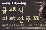 [ 한국미디어뉴스 김풍옥 기자 ] 단양군 어상천 지역에서 활동하는 삼태산 클래식기타 합주단은 공연기획단체 행복한 동행(대표 홍원의)과 함께 오는 18일 오후 4시 어상천 삼태산문화센터에서 ‘고의석·김현규 초청 클래식기타 연주회’를 개최한다. 이번 연주회는 ‘우리 생활 속에서 즐기는 클래식 음악’을 주제로, 지역 주민들이 자발적으로 만들어 온 문화행사다. 어상천에서는 연간 3∼4회의 정기 연주회를 이어오며 지역을 대표하는 음악 문화로 자리 잡고 있으며, 이를 통해 단양의 새로운 문화예술 거점으로 성장 기반을 다져가고 있다. 연주회는 삼태산 클래식기타 합주단이 주관하고 공연기획단체 행복한 동행이 함께 준비했다. 이번 무대에는 국내를 대표하는 클래식 기타리스트 고의석과 김현규가 초청돼 수준 높은 연주를 선보일 예정이다. 두 연주자는 다양한 방송 출연과 각종 대회 수상 경력을 바탕으로 대중에게 친숙한 연주자로 알려져 있다. 공연에서는 관객들이 쉽게 즐길 수 있는 클래식 명곡을 중심으로 다채로운 프로그램이 펼쳐진다. 페르난도 소르(F. Sor)의 ‘위안(L’Encour