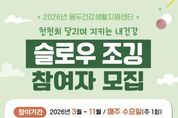 [ 한국미디어뉴스 김풍옥 기자 ] 제천시보건소 용두건강생활지원센터는 최근 조깅을 선호하는 운동 트렌드를 반영해 천천히 달리며 지키는 내 건강! 『슬로우 조깅(Slow Jogging)』 프로그램을 3월부터 본격 운영한다. 이번 프로그램에는 ‘걷기에서 뛰기로’ 자연스럽게 이어지는 중강도 신체 활동을 안전하게 경험할 수 있도록 대원대학교와 업무협약(MOU)을 체결하고, 재활운동 전공 교수진이 직접 참여한다. 프로그램은 주 1회, 총 4회 과정으로, 매주 수요일 오전 10시부터 11시까지 용두건강생활지원센터 주민참여실과 하소천 일원에서 진행된다. 3월에 1기 운영을 시작으로 2기(4월), 3기(5월), 4기(9월), 5기(10월), 6기(11월) 순으로 참여자를 모집해 지속적으로 신체 활동 참여 기회를 확대해 나갈 계획이다. 슬로우 조깅(Slow Jogging)은 걷기보다 약간 빠른 속도로 숨이 차지 않고 대화가 가능한 수준에서 천천히 달리는 유산소 운동으로, 체력 부담이 적어 운동 경험이 적은 주민도 무리 없이 참여할 수 있어 중장년층과 노년층 모두에게 적합한 생활밀착형 운동 프로그램이다.