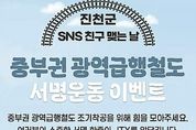 [ 한국미디어뉴스 김풍옥 기자 ] 충북 진천군이 ‘중부권 광역급행철도(JTX)’ 조기 착공을 위한 군민과 국민의 관심을 모으기 위해 오는 3월 29일까지 SNS 서명운동 참여 이벤트를 진행한다. 이번 이벤트는 수도권과 중부권을 연결하는 핵심 교통망인 JTX 건설의 필요성을 널리 알리고, 온라인을 통해 누구나 쉽게 서명운동에 참여할 수 있는 분위기를 조성하기 위해 마련됐다. 참여 방법은 3월 29일까지 진천군 공식 SNS 채널(인스타그램, 유튜브 등) 가운데 1개 이상을 팔로우한 뒤 JTX 서명운동에 참여하고 네이버 폼을 통해 인증하면 된다. 이벤트 참여자 중 무작위 추첨을 통해 선정된 100명에게는 ‘올리브영 1만 원권 상품권’을 증정하며, 당첨 결과는 오는 4월 3일까지 개별 문자 안내와 함께 모바일 기프티콘으로 발송될 예정이다. 이벤트와 관련한 자세한 사항은 진천군 홈페이지, 공식 SNS 채널을 통해 확인할 수 있다. 오정훈 군 미래전략실 주무관은 “서울 잠실에서 광주·용인·안성·진천 등을 거쳐 청주공항과 오송을 연결하는 134km 규모의 JTX는 국가 균형발전을 견인할 핵심 사업