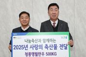 [ 한국미디어뉴스 김풍옥 기자 ] 청주축산업협동조합)은 2일 청주시청을 방문해 지역 소외계층을 돕는 데 써달라며 2천만원 상당 소고기(정육) 500㎏을 시에 기탁했다. 임시청사 직지실에서 진행된 기탁식에는 이범석 청주시장과 이종범 청주축협 조합장이 참석했다. 이번 기탁은 연말을 앞두고 지역사회에 따뜻한 나눔을 전하기 위해 마련됐다. 시는 기탁받은 소고기를 지역 내 사회복지시설 등에 전달할 계획이다. 이종범 조합장은 “지역사회와 함께하는 축협으로 소외된 이웃에게 작은 보탬이 되고자 이번 나눔을 준비했다”며 “앞으로도 지속적인 사회공헌 활동을 이어가겠다”고 말했다. 이범석 시장은 “청주축협의 따뜻한 나눔이 지역사회에 큰 힘이 될 것”이라며 감사를 표했다. 한편 청주축협은 매년 소외된 이웃을 위해 고기, 축제 입장권 등의 물품을 후원하며 나눔문화 확산에 기여하고 있다.