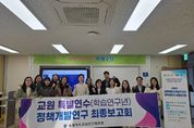 [ 한국미디어뉴스 김풍옥 기자 ] 충청북도교육청 직속기관 교육연구정보원은 2일, 충북교육의 철학과 비전을 바탕으로 교사들의 전문성 강화와 학교현장 발전을 위한 학습연구년 정책개발연구 최종보고회를 개최했다. 최종보고회는 지난 9월에 실시된 중간보고회에서 논의됐던 연구 내용을 보완하고 연구 성과를 마무리하는 활동으로 교사의 연구문화 조성, 충북교육의 질 향상, 현장 밀착형 실행연구, 역량개발 강화를 통한 학교현장지원을 목표로 진행됐다. 학습연구년 총 48명(유아4, 초등22, 중등22)의 교사가 18개의 팀을 이루어 세미나실(6팀), 학습연구년실(6팀), 언플러그드활동실(6팀)에서 ▲교육시책 ▲초‧중등 IB 프로그램 ▲초등 공동교육과정 ▲중등 참여형 수업 등 18개의 주제에 대해 발표했다. 이찬동 교육연구정보원장은 “이번 최종보고회는 학습연구년 교사가 주제별로 연구한 정책연구의 최종 운영성과를 공유하고 충북교육과 학교현장의 발전을 위한 유의미한 시간이었다. 앞으로도 교육연구정보원은 학습연구년 교사가 정책연구 역량을 함양하고 학교현장과 정책을 잇는 다양한 활동을 적극적으로 지원하겠다.”라고 말했다.