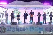 [ 한국미디어뉴스 문상수 기자 ] 고양특례시는 지난 11일 저녁 6시, 일산호수공원 한울광장에서‘2025년 고양특례시민의 날 기념식’을 성황리에 개최했다고 밝혔다. 이번 기념식은 이동환 고양특례시장을 비롯해 시의회 의장, 국회의원, 도·시의원 등 주요 인사와 더불어 고양시민들의 참석으로 성대하게 열렸다. 시는 시민들과 함께 그동안의 시정 성과를 공유하고 미래 비전을 다짐하며 고양시민의 긍지와 애향심을 고취시키는 뜻깊은 시간을 가졌다. 특히, 행사 당일 비가 오는 궂은 날씨에도 불구하고 많은 시민들이 참석해 뜨거운 호응을 보였다. 식전행사로 고양예술고등학교 무용부와 고양시립합창단이 아름다운 공연을 펼쳐 분위기를 고조시켰다. 본 행사에서는 다양한 분야의 시민 대표들이 시민헌장을 낭독하며 화합의 메시지를 전달했으며, 뒤이어 이동환 시장이 기념사를 전했다. 이어 진행된 모범 시민상 시상식에서는 지역 발전에 기여한 시민들에게 상장을 수여했다. 특히, 화려한 퍼포먼스와 함께‘G-노믹스 5개년 계획’을 알린 LED 트론댄스와 가을 밤하늘을 수놓은 불꽃쇼는 시민들에게 깊은 인상을 남겼다
