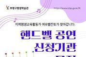 [ 한국미디어뉴스 양선희 기자 ] 인천 부평구평생학습관은 지역사회 문화복지 확대와 평생교육 활성화를 위해 ‘핸드벨 파견공연’ 신청기관을 4월 6일부터 23일까지 모집한다. 이번 사업은 지역 내 평생교육기관 및 복지시설 등을 대상으로 운영되며, 핸드벨 연주를 통해 어르신과 지역 주민에게 정서적 안정과 문화예술을 접할 수 있는 기회를 제공하고자 마련됐다. 지역평생교육활동가로 양성된 핸드벨 지도사 12명이 공연에 참여한다. 이들은 따뜻한 선율의 연주를 선사하며, 각 기관 행사와 프로그램에 활력을 더할 것으로 기대된다. 파견공연은 4월부터 11월까지 운영되며, 참여 기관은 사전 일정 협의를 통해 무료로 지원받을 수 있다. 핸드벨 파견공연 신청은 부평구평생학습관 누리집 공지사항을 통해 신청할 수 있으며, 포스터 내 QR코드를 통해 자세한 사항을 확인할 수 있다. 기타 문의는 평생학습관(☎032-509-6435)으로 하면 된다. 부평구 관계자는 “이번 사업을 통해 지역 내 다양한 기관에 문화예술 공연을 보다 쉽게 제공할 수 있을 것으로 기대한다”며 “공연이 필요한 기관의 많은 관심과 참여를 바란다”고 밝혔다.
