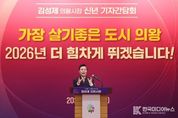 [ 한국미디어뉴스 이보영 기자 ] 김성제 의왕시장이 5일 시청 대회의실에서 2026년 신년 기자간담회를 열고 민선8기 의왕시 주요성과와 2026년 시정 운영방향에 대해 설명하는 시간을 가졌다. 김 시장은 “지난 3년 반은 의왕시의 새로운 미래를 준비하며 역동적으로 도약해 온 시간이었다”며, “대규모 도시개발과 복선전철 사업을 비롯해 교육과 복지, 문화‧예술, 일자리, 안전에 이르기까지 도시 전반에 걸쳐 혁신적인 변화를 만들어 왔다”고 평가했다. 특히, 오랫동안 해결되지 못했던 숙원사업들이 해결된 것을 의왕시의 주요 성과로 설명하며, 대표적인 사례로 의왕 문화예술회관 착공, 인덕원~동탄 및 월곶~판교 복선전철 착공, 내손중고통합학교 개교, 의왕 종합병원 유치 등을 꼽았다. 또한, 초평지구와 청계2지구 내 기업·투자 유치, 부곡커뮤니티센터 착공, 의왕역~판교 간 프리미엄버스 및 초평동 똑버스 신설, 의일로2 개통 등 도로망 확충, 22개 맨발걷기길 조성, 백운호수 생태탐방로 및 백운호수공원 개장, 의왕야구장 및 금천천 파크골프장 개장, 글로벌인재센터 부곡분원 개소, 노인 버스 무료승차 지원사업 추진, 장애인 힐링
