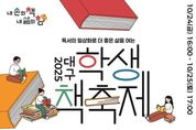 [ 한국미디어뉴스 이보영 기자 ] 대구시교육청은 학생과 학부모, 교직원이 함께 책으로 소통하며 독서문화를 확산하기 위해 10월 24일부터 25일까지 대구민주시민교육센터와 대구2·28기념학생도서관에서 ‘2025. 대구 학생 책축제’를 개최한다. ‘대구 학생 책축제’는 2009년 첫 학생 저자 출판지원 도서가 탄생한 이후 매년 열리고 있는 지역 대표 독서인문 축제로, 학교와 공공도서관, 지역사회의 다양한 독서 활동을 공유하고 함께 즐기는 자리다. 올해는 ‘내 손의 책, 내 삶의 힘’을 주제로, 책을 읽고 쓰고 나누는 경험을 통해 독서의 일상화를 확산하는 데 초점을 맞춰, ▲수품책(수업 품은 책읽기) 마당, ▲독서/토론/책쓰기 마당, ▲내손의 책, 내삶의 힘 독서 실천 마당 등으로 구분해 가족·학생·교직원이 함께 즐길 수 있는 다채로운 프로그램이 운영된다. 먼저, 수품책 마당에서는 교원 수품책 연구회 40개 팀의 활동 사례 발표와 전시가 진행된다. 또한 ▲10월 25일 오전 10시, 서울삼정중 이민수 교사의 ‘이럴 땐, 이런 책’ 특강, ▲초·중등 학년별·교과별 맞춤형 교원 연수 7개 과정을 운영한다.