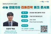 [ 한국미디어뉴스 이보영 기자 ] 구로구가 오는 4월 2일 구로구청 대강당에서 ‘2026 수능 만점자와 진로진학 토크콘서트’를 개최한다. 이번 토크콘서트는 대학수학능력시험 만점자의 실제 경험을 바탕으로 효과적인 학습 방법과 진로·진학 전략을 공유하고, 청소년과 학부모의 궁금증을 해소하기 위해 마련됐다. 강연자로는 2026학년도 대학수학능력시험 만점자인 최장우 학생(서울대학교 경제학부 재학)이 나선다. 최장우 학생은 ‘유 퀴즈 온 더 블록’, ‘뉴스투데이’, ‘김현정의 뉴스쇼’ 등 다양한 방송과 유튜브 채널에 출연해 주목받았다. 이날 특강은 관내 중‧고등학생 및 학부모 150명을 대상으로 4월 2일 오후 7시부터 8시 30분까지 진행된다. 전문 사회자의 진행으로 사전 접수된 질문 중 5가지를 선정해 답변하고, 청소년과 학부모에게 전하고 싶은 메시지도 함께 전달할 예정이다. 이어 현장 참여자들과의 즉석 질의응답을 통해 보다 구체적이고 실질적인 상담을 진행하고, 행사 종료 후에는 만족도 조사와 기념사진 촬영으로 마무리한다. 신청은 3월 31일까지 홍보 안내문의 큐알(QR)을 통해 선착순으로
