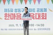 [ 한국미디어뉴스 이원영 기자 ] 서울 성동구는 지난 11월 1일 살곶이체육공원에서 성동구 아파트 단지들이 한자리에 모여 ‘제5회 아파트공동체 한마음 체육대회’를 성황리에 개최했다. 올해로 5회째를 맞는 이번 체육대회는 성동구 아파트공동체 활성화단체 연합회(성아공 연합회)가 중심이 된 아파트공동체 한마음 체육대회 추진위원회 주관으로 진행됐으며, 성동구청과 각 아파트 공동체 활성화단체가 협력하여 원활한 행사 진행을 지원했다. 성동구가족센터, 옥수종합사회복지관 등 관내 복지시설에서는 다양한 체험부스 등을 운영했다. 체육대회는 관내 32개 아파트에서 약 650명의 입주민이 참여하여, 각기 다른 아파트 단지 주민들이 4개의 팀을 이뤄 협력과 경쟁을 즐기는 방식으로 진행됐다. 참가자들은 풍선 기둥 만들기, 한마음 공굴리기 등 가족과 이웃들이 함께 즐길 수 있는 스포츠 종목에 참여도 하고, 입주민 장기 자랑, 아이들을 위한 키즈존, 푸드트럭 등 다양한 볼거리, 먹을거리 등으로 즐거운 시간을 보냈다. 특히, 이번 체육대회는 단순히 스포츠를 즐기는 것을 넘어, 아파트 단지 내 주민들 간의 유대감을 깊게 만드는 기회가 됐다.