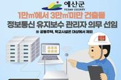 [ 한국미디어뉴스 이원영 기자 ] 예산군은 대형 건축물의 정보통신설비 장애를 예방하고 안정적인 운영을 도모하기 위해 ‘정보통신설비 유지보수 관리자 선임제’를 시행하고 대상 확대에 나선다. 이번 제도는 공동주택과 ‘학교시설사업 촉진법’ 적용 학교시설을 제외한 연면적 5000㎡ 이상 대형 건축물을 대상으로 추진되며, 군은 제도의 원활한 정착을 위해 개별 우편 안내와 군 홈페이지를 통해 지속적인 홍보를 실시하고 있다. 제도는 단계적으로 확대 적용되며, 지난해 7월 19일부터 연면적 3만㎡ 이상 건축물에 우선 시행됐다. 이어 올해 7월 19일부터는 1만㎡ 이상, 2027년 7월 19일부터는 5000㎡ 이상 건축물까지 확대될 예정이다. 건축물 관리주체는 제도 적용 시점 이후 일정 기간 내 정보통신설비 유지보수 관리자를 선임하고 선임 사실을 군청 자치행정과 정보통신팀에 신고해야 한다. 선임된 관리자는 건축물 내 정보통신설비 상태를 정기적으로 점검하고 반기별 유지보수 점검과 연 1회 성능 점검을 실시해 설비의 안정성을 확보해야 하며, 건물 규모에 적합한 정보통신기술자 자격을 갖추고 전문 교육을 이