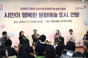 [ 한국미디어뉴스 이원영 기자 ] 안양시는 13일 오전 10시 30분 평촌아트홀 1층 카페 아트림에서 ‘시민이 행복한 문화예술 도시, 안양’을 주제로 (재)안양문화예술재단과 민선 8기 3주년 공공·협력기관 순회 간담회를 개최했다. 이번 간담회는 민선8기 3주년을 맞아 안양시 문화예술 정책의 주요 성과를 공유하고, 현장 예술인과 시민의 의견을 직접 청취하기 위해 마련됐다. 행사에는 안양 지역 예술인과 문화단체 관계자, 시민 등 120여 명이 참석해 안양의 문화예술 비전과 발전 방향에 대해 활발한 소통의 시간을 가졌다. 간담회에서는 ▲시민이 주인공이 되는 ‘안양춤축제’ ▲생활문화로 피어나는 ‘마을축제 지원사업’ ▲지역·청년예술인 창작활동 지원 ▲안양박물관과 공공예술프로젝트(APAP) 등 시민이 함께 만들어가는 다양한 문화예술 사례가 소개됐다. 안양춤축제는 안양만의 축제가 아니라 관광형 축제로 거듭나고 있다. 지난 9월 3일간 열린 축제에는 총 14만2,000여명이 참여했는데, 이 중 40%가 타 시도민으로 추산된다. 춤축제 기간 열린 유스클럽챔피언십의 한 고등학생 참가자는 “대회 분위기가 생각보다 훨씬 뜨거웠고