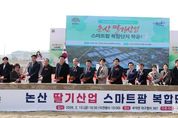 [ 한국미디어뉴스 이원영 기자 ] 대한민국 스마트농업을 선도 중인 충남도가 ‘딸기 메카’ 논산에 대규모 수출 전문 딸기 스마트팜 단지를 만든다. 도는 13일 논산시 부적면 마구평리 일원에서 전형식 정무부지사와 청년농업인 등 300여 명이 참석한 가운데 ‘논산 딸기산업 스마트팜 복합단지(이하 논산 딸기 복합단지)’ 착공식을 개최했다. 논산 딸기 복합단지는 2028년까지 145억 5500만 원을 투입, 14.1㏊(4만 3000평) 규모로 조성한다. 논산 딸기 복합단지는 논산시가 국유지 땅을 매입해 용배수, 전기, 도로, 오폐수 처리 등 기반 시설을 설치한 뒤 부지를 제공하고, 청년농 등이 보조·융자금과 자부담으로 온실을 설치한다. 1단계 충남형 스마트팜 복합단지 7.4㏊는 15개 구획으로 나눠 올 상반기 완공을 목표로 조성 추진 중이다. 도와 논산시는 15개 구획 가운데 12개 구획 12명의 입주 청년농 선발을 마쳤으며, 다음 달 중 나머지 3명을 선발할 계획이다. 각 구획당 면적은 3300∼4950㎡ 규모로, 청년농에게 안정적인 스마트팜 경영 기회와 함께 자립 기반을 제공한다. &nbs