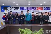 [ 한국미디어뉴스 이원영 기자 ] 태백시 지난 26일 시청 소회의실에서 2025년 태백시 미래인재 신규 선발자와 그 가족 등이 참석한 가운데 미래인재 지원금 및 인증패 수여식을 개최했다. 2025년 태백시 미래인재는 지난 16일 미래인재육성위원회 심의를 통해 개인 8명과 단체 1팀이 선발됐다. 이번 수여식을 통해 올해 선발된 미래인재들에게는 지원금 지급증서와 인증패가 수여됐으며, 300만 원의 지원금이 지원될 예정이다. 올해 선발된 미래인재는 1년차 300만 원을 포함하여 향후 실적 평가에 따라 2‧3년차 각 100만 원씩 최대 3년간 500만 원 한도 내에서 지원받는다. 선발된 미래인재는 다음과 같다. △ 체육〔정지원(태권도), 최효주(태권도), 변근범(우슈), 황의제(스키), 김경호(레슬링), 황지정보산업고등학교(핸드볼)〕 △ 문화예술〔김유빈(영상), 조호현(가야금병창), 윤시연(발레)〕 한편 태백시 미래인재 육성 사업은 체육·문화예술·자연과학·인문사회·기술기능 등의 분야에서 잠재력 있는 지역인재를 발굴하고자 추진되는 장학사업으로 지난 2013년부터 올해까지 개인 71명, 단체