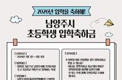 [ 한국미디어뉴스 이원희 기자 ] 남양주시는 오는 3월부터 2026년 초등학교에 입학하는 아동의 새로운 출발을 응원하기 위해 입학축하금 지원 사업을 추진한다고 3일 밝혔다. 이번 사업은 초등학교 입학이라는 중요한 생애 전환기를 맞는 아동과 가정을 실질적으로 지원하기 위해 마련한 교육복지 정책의 일환으로 추진됐다. 지원금은 지역화폐로 지급해 교육지원과 동시에 지역 내 소비 촉진의 효과를 도모할 예정이다. 지원 대상은 입학일 기준 남양주시에 주민등록을 두고, 일반 초등학교 또는 대안교육기관에 2026학년도 1학년으로 최초 입학하는 학생이다. 학생 1인당 남양주사랑상품권(지역화폐카드) 10만 원이 지급될 예정이다. 신청은 3일부터 8월 31일까지 남양주시청 누리집 또는 거주지 읍면동 주민센터 방문을 통해 가능하다. 아동과 함께 주민등록이 등재된 부모 또는 사실상 양육자가 신청할 수 있다. 신청자는 본인 명의 휴대전화에 경기지역화폐 애플리케이션을 설치 후 남양주사랑상품권을 등록해야 하며, 지원금은 신청일이 속한 달의 다음 달 말일에 지급된다. 지급된 입학축하금은 지급일 기준으로 3년 이내 사용해야 한다.