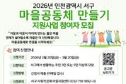 [ 한국미디어뉴스 이원희 기자 ] 인천 서구는 주민 스스로 지역 문제를 해결하고 마을공동체의 성장을 도모하는 ‘2026년 서구 마을공동체 만들기 지원사업’ 참여 공동체와 마을지원활동가를 모집한다. 올해로 8년째 운영되는 이 사업은 주민 간 협력을 바탕으로 마을공동체가 지속적으로 성장할 수 있도록 지원하는 데 목적을 두고 있다. 지원유형은 일반형과 기획형으로 구분하며 ▲일반형은 초기형(최대 100만 원)과 성장발전형(최대 300만 원)으로 총 40개 공동체 ▲기획형은 돌봄, 협업, 네트워크, 공간 등 특정 주제 6개 유형으로 유형별 최대 500만 원에서 1,500만 원까지 총 14개 공동체를 선발하며, 인천 서구 지역에 생활하는 주민 3인 이상 모임이면 누구나 신청할 수 있고 신청 기간은 2026년 2월 20일(금)부터 3월 20일(금)까지다. 서구사회적경제마을지원센터는 주민들의 이해를 돕기 위해 사전컨설팅을 운영하여, 다양한 공동체가 참여하는 내실 있는 성과를 기대하고 있다. 신청 자격 등 자세한 사항은 인천 서구청 홈페이지 고시공고 및 센터 홈페이지에서 확인할 수 있고, 기타 문의는 서구사회적경제마을지원센