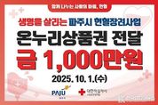 [ 한국미디어뉴스 이원희 기자 ] 파주시는 지난 1일 대한적십자사 서울중앙혈액원에 1천만 원 상당의 헌혈장려지원금 상품권을 전달했다. 시는 안정적인 혈액 공급 기반을 마련하고 지역사회 내 헌혈 참여문화를 확산하기 위해 지난달 헌혈추진협의회를 구성 회의를 개최했으며, 회의 결과에 따라 관내 헌혈자 대상 인당 1만 원 상당의 온누리상품권을 지급할 예정이다. 특히 파주시는 말라리아 헌혈 제한 지역으로, 관내 헌혈의집이 없어 헌혈버스를 통해서만 헌혈이 가능하고 동계기간인 11월~3월에 한해 전혈헌혈이 허용되는 등 여러 제약이 있다. 이러한 어려운 여건 속에서도 시민들의 헌혈 참여를 확대하기 위해, 국내 말라리아 헌혈 제한 지역 중 최초로 헌혈장려금을 지원하게 됐다. 이한상 파주보건소장은 “헌혈장려지원금 지급이 혈액 수급 안정화와 헌혈 참여문화 확산에 기여하는 계기가 되길 기대한다”라고 밝혔다.