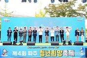[ 한국미디어뉴스 이원희 기자 ] 파주시는 지난 27일 금릉역 앞 중앙광장에서 열린 ‘제4회 파주 청년희망축제’가 시민들의 뜨거운 호응 속에 성공적으로 마무리됐다고 밝혔다. 올해 축제는 ‘파주청년, 다시 도약하다!(Paju Youth Again, Jump Up!)’을 주제로, 도약하는 청년세대의 열정과 활력을 시민과 함께 나누는 장으로 마련됐다. 이번 축제의 백미는 개막식과 함께 진행된 ‘파주 청년 비전선포식’이었다. 청년정책협의체 공동위원장은 무대에서 ‘청년이 뿌리내리는 도시, 파주’라는 비전을 선포하며, 청년과 지역사회가 함께 나아갈 미래의 방향을 제시했다. 특히 청년들이 직접 낭독한 선언문과 청년친화도시 지정을 위한 기념행사는 파주시의 확고한 의지를 대외적으로 알리는 계기가 됐다. 오후 2시부터 8시까지 진행된 이번 축제는 ▲사전공연 ▲청년 골든벨 ▲청년 가요제 ▲청년공간 특별강좌 ▲프리미엄 수제 맥주 시음 ▲청년창업가 플리마켓 ▲무료 체험공간 ▲대형 ‘파랑’ 포토존 등 다채로운 프로그램으로 꾸려졌다. 가요제 무대에서는 청년들의 끼와 열정이 빛났으며, 청년창업가 판매공간 및 수제 맥주 시음