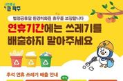 [ 한국미디어뉴스 이원희 기자 ] 파주시는 환경미화원 휴무 보장을 위해 추석 연휴 기간인 10월 4일부터 10월 6일, 10월 8일부터 10월 9일까지는 생활폐기물을 배출해서는 안 되며, 이 기간 동안에는 생활쓰레기 수거가 중단된다고 밝혔다. 단, 운정신도시 내 자동집하시설이 설치된 지역은 추석 연휴에도 평소처럼 집하시설을 통해 종량제봉투를 정상적으로 배출할 수 있고, 연휴 마지막 날인 10월 9일 18시부터는 쓰레기 배출이 가능하다. 시는 추석 명절과 아시아태평양경제협력체(APEC) 정상회의를 계기로, 행정안전부 주관 ‘대한민국 새단장 캠페인’에 동참해 9월 22일부터 10월 1일까지 중점 청소 및 단속 기간으로 지정했다. 이 기간 동안 추석맞이 대청소를 통해 청소 취약지역을 정비하고, 쓰레기 무단투기 예방을 위한 집중 단속을 실시해 연휴 기간 동안 청결한 환경을 유지할 계획이다. 또한 시는 연휴 기간인 10월 3일부터 10월 9일까지 시민들의 불편을 최소화하기 위해 상황반을 운영하고, 청소대행업체에서는 15개 기동반을 배치해 쓰레기 관련 불편 사항과 민원을 신속하게 처리할 계획이다. 특히 야당