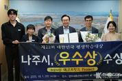 [ 한국미디어뉴스 이종철 기자 ] 전라남도 나주시가 교육부 주관 ‘제22회 대한민국 평생학습대상’에서 환경과 자원순환 학습을 생활 속 실천으로 확산한 성과를 전국적으로 인정받았다. 나주시는 지난 1일 정부세종컨벤션센터에서 열린 ‘제22회 대한민국 평생학습대상’ 시상식에서 ‘우수상’을 수상했다고 2일 밝혔다. 이번에 수상한 ‘에코브릿지 Project’는 경력단절여성, 청소년, 장애인, 어르신 등 다양한 계층을 대상으로 재활용, 분리배출 교육과 미디어아트 융합 체험을 운영해 시민들의 자발적 참여와 생활 속 실천을 끌어낸 혁신적 평생학습 프로그램으로 평가받았다. 대한민국 평생학습대상은 전국 지자체와 기관 및 단체의 우수 사례를 발굴하고 확산하기 위해 2004년부터 매년 개최되는 국내 최고 권위의 평생학습 시상제도다. 나주시는 지난 2022년 제19회 대회 우수상 수상에 이어 올해 다시 한번 성과를 거두며 ‘시민 모두가 배우고 실천하는 학습공동체’로서의 위상을 공고히 했다. 윤병태 나주시장은 “이번 수상은 평생학습을 통해 지속 가능한 지역 발전을 만들어가는 나주시민 모두의 성과”라며 “평생학
