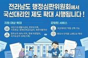 [ 한국미디어뉴스 이종철 기자 ] 전라남도행정심판위원회는 경제적 문제로 대리인을 선임할 수 없다고 인정하는 행정심판 청구인의 국선대리인 선임 지원 대상을 올해부터 확대한다고 밝혔다. 국선대리인 제도는 경제적 사유로 대리인 선임이 곤란한 행정심판 청구인을 위해 도행정심판위원회에서 국선대리인 선임을 무료로 지원하는 제도다. 지원 대상은 기존 국민기초생활수급자, 한부모가족 지원대상자, 기초연금수급자, 장애인연금수급자, 북한이탈주민 보호대상자와 함께 행정심판위원장이 경제적 능력으로 대리인을 선임할 수 없다고 인정하는 자(중위소득 80% 이하인 자·전년도 영세 자영업자), 국가유공자와 그 유족(가족)까지 확대됐다. 또한 지원 대상자가 국선대리인을 직접 선택하도록 하고, 국선대리인으로 활동 중인 변호사를 기존 9명에서 12명까지 추가 위촉해 인력도 강화한다. 국선대리인 신청은 행정심판 청구 시 지원 대상 여부를 확인할 수 있는 증명서류를 첨부해 전남도행정심판위원회에 방문하거나 우편 또는 온라인으로 하면 된다. 이후 도행정심판위원회에서 선임 여부를 결정해 국선대리인을 지정·통지하며, 국선대리인은