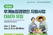 [ 한국미디어뉴스 이종철 기자 ] 담양군이 오는 2월 11일까지 ‘2026년 후계농업경영인 육성사업’ 대상자를 모집한다. ‘후계농업경영인 육성사업’은 농업 발전을 이끌어갈 유망한 예비 농업인과 농업경영인을 발굴해 일정 기간 자금·교육·컨설팅 등을 종합적으로 지원함으로써 정예 농업 인력으로 육성하는 사업이다. 영농교육을 이수하고 영농창업을 계획하거나 농업을 가업으로 승계하고자 하는 미래 농업 인력의 주축이 될 가능성이 높은 인재를 발굴하는 것을 목적으로 한다. 신청 대상은 18세 이상 49세 미만(1976~2008년도 출생자)으로, 영농 경력이 없거나 10년 미만인 농업인이다. 또한 대학의 농업 관련 학과나 농업계 고등학교를 졸업했거나, 시장·군수·구청장이 인정한 농업 교육기관에서 관련 교육을 이수한 경우에 한해 신청할 수 있다. 다만, 올해 산업기능요원 편입 대상자가 아닌 병역 미필자의 경우 군 복무를 완료한 이후에 자금 대출 신청이 가능하다. 사업 신청은 ‘농업e지’ 홈페이지를 통해 온라인으로만 가능하며, 마감일은 2월 11일 오후 6시 정각이다. 이후에는