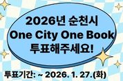 [ 한국미디어뉴스 이종철 기자 ] 순천시가 오는 27일까지 2026년 한 해 동안 순천시민이 함께 읽을 ‘2026년 순천시 One City One Book’ 선정을 위한 시민 투표를 진행한다고 밝혔다. One City One Book 시민 투표는 온라인과 오프라인으로 진행된다. 온라인은 네이버폼에서 진행되며, 온라인 투표 후 인스타그램 이벤트에 참여하면 추첨을 통해 100명에게 커피 기프티콘을 증정하는 이벤트도 운영한다. 오프라인은 순천시립도서관(삼산, 그림책, 기적, 조례호수, 신대, 어울림, 해룡, 풍덕)에서 참여 가능하다. 순천시 One City One Book은 2004년 임철우 작가의 소설 '등대'를 시작으로 시민 참여를 통해 한 권의 책을 선정하고 순천시민이 함께 읽는 범시민 독서진흥 운동이다. 2026년 One City One Book은 시민들에게 301권의 후보 도서를 추천받아, 1차로 순천시립도서관 자료선정심의회 회의를 통해 30권을 선별했으며, 독서 전문가로 구성된 선정심의회 회의로 총 5권의 후보도서가 결정됐다. 후보 도서는 '가장 평범한 아픔(김명희)', '공감