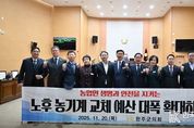 [ 한국미디어뉴스 이종철 기자 ] 완주군의회는 20일 열린 제297회 제2차 정례회 제1차 본회의에서 김재천 부의장이 대표 발의한 ‘노후 농업기계 교체 사업 예산 정상화 촉구 건의안’을 만장일치로 채택했다. 이번 건의안은 고령화와 농촌 인력 부족이 심화되는 상황에서, 대기오염과 농업인 재해의 주요 원인으로 지적돼 온 노후 농업기계 교체 사업이 축소된 데 대한 우려를 담고 있다. 김재천 부의장은 제안 설명에서 “노후 농업기계는 생산성 저하나 불편의 문제가 아니라, 대기오염과 안전사고를 동시에 유발하는 농촌의 대표적 위험 요소”라며 “오래된 트랙터와 콤바인의 미세먼지 배출량은 동급 화물차의 세 배에 달하고, 매년 1,200톤이 넘는 오염물질이 농촌에 흩뿌려지고 있다”고 지적했다. 이어 그는 “고장과 안전장치 미비로 인한 농업기계 사고는 농업인의 생명을 위협하는 중대 재해로 이어지고 있다”며 “실제 농업기계 재해는 사업이 중단된 이후 증가세를 보여 2021년 1만 2,000여 건에서 2023년 1만 6,000여 건으로 늘어났다”고 설명했다. 또한 정부가 2012년 이전 생산 장비 2만 5,600대를 3