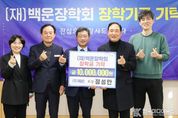 [ 한국미디어뉴스 이종철 기자 ] 재단법인 백운장학회는 12월 31일 시청 만남실에서 정성만 (주)픽슨 회장을 비롯한 임직원이 참석한 가운데 장학금 기탁식을 개최했다. 광양시 옥곡면 신금리에 위치한 ㈜픽슨은 1994년 설립된 대한민국 유일의 파형강관·강판 동시 생산 기업으로, 독보적인 기술력으로 국내 시장을 선도하고 있다. 또한 호주, 중동, 러시아 등 10여 개국에 수출하며 글로벌 시장에서도 기술력과 품질을 인정받고 있다. 정성만 ㈜픽슨 회장은 (재)백운장학회에 지난 2012년부터 현재까지 6차례에 걸쳐 총 6천만 원을, (재)광양시어린이보육재단에는 2017년부터 CMS 등을 통해 총 8천여만 원을 기탁하는 등 행복한 보육 환경 조성과 지역 인재 육성에 지속적으로 힘써왔다. 이번 기탁금 1천만 원 중 5백만 원은 보호자가 없어 초등학생 때부터 YMCA에 거주하고 있는 외국 국적 학생이 서울 소재 대학교에 진학하는 데 필요한 장학금으로 사용될 예정이다. 정성만 회장은 “지역의 미래는 결국 사람에게 달려 있다”며 “학생들이 보다 안정적인 환경 속에서 꿈을 키워갈 수 있도록 작은 힘이나마