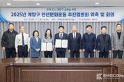[ 한국미디어뉴스 황영수 기자 ] 인천광역시 계양구는 안전문화 정착 및 민관 협력 네트워크 강화를 위해 3일 구청 영상회의실에서 ‘안전문화운동 추진협의회’ 회의를 개최했다. ‘계양구 안전문화운동 추진협의회’는 지속가능한 안전문화 확산을 목표로 계양구 지역 공공기관장 및 민간단체장 등 19명으로 구성된 협의체로, 구민 안전의식 제고를 위한 캠페인 및 홍보, 안전교육 발굴 등 지역사회 안전문화 진흥의 중심 역할을 담당하고 있다. 이번 회의에서는 ▲2025년 안전문화운동 추진실적 및 2025년 시행계획 보고 ▲겨울철 자연재난(대설) 대응계획 공유 ▲안전문화 실천방안에 대한 의견수렴이 이뤄졌다. 참석 위원들은 실효성 있는 안전문화운동 실천 방안과 민관 협력 강화를 위한 다양한 의견을 제시하며 활발한 논의를 펼쳤다. 윤환 계양구청장은 “재난 유형이 갈수록 다양해지고 복잡해지는 만큼 모든 기관과 단체가 유기적으로 협력하는 것이 무엇보다 중요하다.”라며 “민관이 함께하는 안전문화운동 추진협의회를 통해 실질적인 협조체계를 구축하고, 구민이 체감할 수 있는 안전한 계양구를 만들어 나가겠다.”라고 말했다.