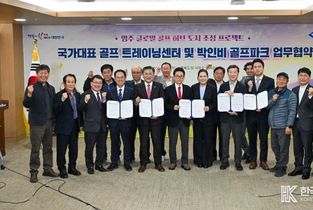 [ 한국미디어뉴스 이원영 기자 ] 경상북도는 3월 17일 경북도청에서 ‘영주 국가대표 골프 트레이닝 센터 및 박인비 골프파크 조성사업을 위한 업무협약’을 체결하고 ‘영주 글로벌 골프 허브 도시 조성 프로젝트’를 본격 가동한다. 이날 협약식에는 이철우 경상북도지사를 비롯해 박성만 경상북도의장, 엄태현 영주부시장, 장상진 와우매니지먼트 대표, 프로골퍼 박인비, 김택수 대한체육회 진천선수촌장 등이 참석했다. ◈ 국가대표 트레이닝 센터와 국제대회 가능 27홀 대중제 골프장 단지 추진 이번 사업은 총사업비 1,500억 원이 투입되어 영주시 장수면 두전리 일원 43만평 부지에 국가대표 트레이닝 센터와 27홀의 대중제 골프장을 건립한다. 43만평의 부지에는 골프 인재 육성의 요람이 될 ▲국가대표·유소년 골프 트레이닝 센터 및 ▲스포츠 과학 지원시설, ▲국제대회가 가능한 27홀 규모의 대중제 골프장, ▲박인비 프로의 상징성을 담은 박인비 골프 박물관과 전문 아카데미가 건립되어 연간 약 50만 명 이상의 관광객 방문이 예상된다. 아울러, ▲400실 규모의 호텔 등 체류형 숙박시설과 ▲지역 특산물 판매시설, ▲캠핑