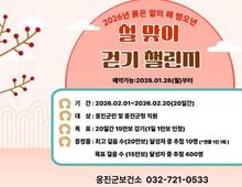[ 한국미디어뉴스 기동취재 기자 ] 인천 옹진군(군수 문경복)은 설 명절을 맞아 군민의 걷기 실천을 장려하고 건강생활 실천 분위기를 확산하기 위해, 2월 1일부터 20일까지 운영되는 「설 맞이 걷기」챌린지의 참가자를 1월 26일부터 모집한다고 밝혔다. 이번 챌린지는 모바일 걷기 앱 ‘워크온’을 활용한 비대면 걷기 사업으로, 옹진군민과 옹진군청 직원 누구나 참여 가능하다. 참가자는 20일간 누적 15만보 걷기(1일 최대 1만보)를 목표로 일상 속 걷기 실천에 참여하게 된다. 특히 이번 2월 챌린지는 참여자 수 대비 달성률이 상대적으로 저조했던 기존 운영 결과를 보완하기 위해 중간 점검 알림(리마인드 메시지)을 발송해 참여자가 스스로 걷기 실천 현황을 점검하고 참여를 지속할 수 있도록 지원할 계획이다. 이번 챌린지는 인센티브 지급 규모도 대폭 확대된다. 기존에는 목표 달성자 중 150명을 추첨해 인센티브를 제공했으나, 이번에는 400명으로 추첨 인원을 늘려 더 많은 혜택을 받을 수 있도록 했다. 또한, 누적 걸음 수가 가장 많은 10명을 ‘최고걸음상’수상자로 별도 선정해, 걷기 실천 동기 부여를 한층 강화했다. 최고걸음상은 연중 1인 1회로 제한되어 보다 많은