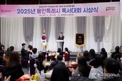 [ 한국미디어뉴스 이원영 기자 ] 용인특례시는 1일 시청 컨벤션홀에서 ‘2025년 제32회 용인특례시 전국 독서감상문 대회’와 ‘2025년 독서마라톤 대회’ 시상식을 개최했다. 올해 독서감상문 대회엔 총 981편이 접수됐으며, 심사위원단은 내용 이해도‧감정 표현‧문장력 등을 기준으로 총 26편을 수상작으로 선정했다. 도서관은 지난 8월 11일부터 9월 21일까지 ‘소년이 온다’, ‘모우어’, ‘비스킷’ 등 용인특례시 올해의 책을 대상으로 한 감상문을 접수했다. 대상은 ‘모우어’를 읽고 정교한 문장력과 탁월한 묘사력으로 미래 사회의 인간다움에 관해 깊이 있는 성찰을 담아낸 안경선 씨가 차지했다. 최우수상은 문예서‧정희정(초등부), 김단아 양(청소년부), 송지은‧박진현‧김성현 씨(일반부)가 차지했다. 우수상에는 8명, 장려상에는 11명이 뽑혔다. 책을 읽고 서평을 작성해 읽은 양을 코스로 환산하는 시민 참여형 독서 캠페인인 독서마라톤 대회엔 올해 5735명이 참여해 2021명이 완주했다. 도서관은 이 가운데 기록과 성취도를 기준으로 18명(팀)을 수상자로 선정했다.