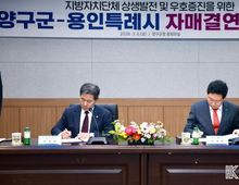 [ 한국미디어뉴스 김일규 기자 ] 용인특례시는 6일 강원특별자치도 양구군과 자매결연을 하고, 두 도시의 교류와 발전을 위해 적극 협력하기로 했다. 이상일 시장은 이날 양구군청 중회의실에서 서흥원 군수와 두 도시 간 우의를 증진하고 상호 교류‧협력하는 데 합의하고, 자매결연 협약서에 서명했다. 이번 협약으로 양구군은 시의 16번째 자매도시가 됐다. 이상일 시장은 “양구는 문화예술 분야에서 과감한 투자를 하고 있고, 양구군립박수근미술관은 2023년 양구 출신 박수근 화백의 1956년 작품 ‘가족’을 품었는데 두 도시가 앞으로 가족처럼 잘 지냈으면 한다”며 “이번 협약을 계기로 양 도시가 협력을 강화해서 함께 발전하길 기원한다”고 말했다. 이 시장은 “양구군과 용인시의 훌륭한 농산물들이 양 도시에서 소비하도록 서로 홍보하는 등 협조 체계를 갖추는 노력도 기울이자"라며 "양구에는 테니스장, 축구장 등 스포츠 시설이 아주 잘 갖춰져 있는 만큼 용인의 스포츠팀이나 단체들이 양구를 찾아 훈련하는 등 체육 분야의 협력도 도모하면 좋겠다"고 했다. 서흥원 군수는 “용인의 인프라와 비전이 대한민국 지방