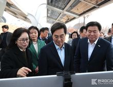 [ 한국미디어뉴스 이보영 기자 ] 시흥시는 3월 16일 시화방조제 자전거길에서 ‘경기 햇빛 자전거길 1호’ 디자인 태양광 조성을 기념하는 준공식이 열렸다고 밝혔다. ‘경기 햇빛 자전거길’ 사업은 자전거길 상부 유휴공간을 활용해 태양광 발전시설을 설치하고 시민 편의시설과 경관 디자인을 결합한 생활밀착형 재생에너지 인프라 조성 사업이다. 사업 대상지는 정왕동 2376번지 시화방조제 자전거길 초입 840m 구간으로, 약 761.6kW 규모의 디자인 태양광 발전시설이 설치됐으며 사업비 약 17억 원이 전액 민간 자본으로 투입됐다. 특히 발전사업을 통해 창출되는 ‘햇빛소득’을 시민 편익으로 환원하는 방식으로 쉼터, 자전거 공기주입기, 운동기구, 야간 경관조명 등 다양한 시민 편의시설도 함께 조성됐다. 이번 사업은 기존의 태양광 설치 방식에서 벗어나 시화호의 물결과 갈매기 비상을 형상화한 웨이브형 디자인 태양광과 LED 경관조명을 적용해 시화호 경관과 조화를 이루도록 조성된 것이 특징이다. 시민들이 휴식과 여가를 즐기면서 재생에너지를 체감할 수 있는 공간으로 꾸며졌다. 이날 준공식에는 김동연 경기도지사와 임
