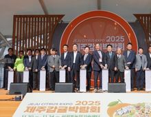 [ 한국미디어뉴스 이원영 기자 ] 제주 감귤산업의 현재와 미래를 조망하는 ‘2025 제주감귤박람회’가 20일 서귀포농업기술센터에서 개막했다. 제주특별자치도와 ㈔제주국제감귤박람회조직위원회(위원장 고문삼)가 마련한 이번 박람회는‘국민과 함께하는 사랑받는 제주 감귤! 세계로! 미래로!’를 주제로 24일까지 5일간 진행된다. 개막식에는 오영훈 제주도지사, 이승돈 농촌진흥청장, 이상봉 제주도의회 의장, 강충룡 의원, 김광수 교육감, 농업인·도민·관광객 등 1,000여 명이 참석했다. 개막식에 앞서 감귤산업의 주역인 농업인이 직접 박람회의 시작을 알리는 ‘개막 퍼레이드’가 진행됐다. 하례1교차로에서 메인무대까지 이어진 행렬에는 제주자치경찰단 기마대, 만장기 기수단, 감귤농민 300여 명이 참여하며 축제 분위기를 한층 고조시켰다. 무대에서는 숨비소리합창단과 다온무용팀의 공연, 해병대 군악대 연주가 펼쳐졌다. 고문삼 조직위원장은 개회사에서 “감귤박람회는 제주 감귤의 소비시장 확대와 농가 소득 창출을 위해 기후변화 대응 세미나·유통상담회·아시아 시트러스 협의체 발족 등 다양한 역할을 수행